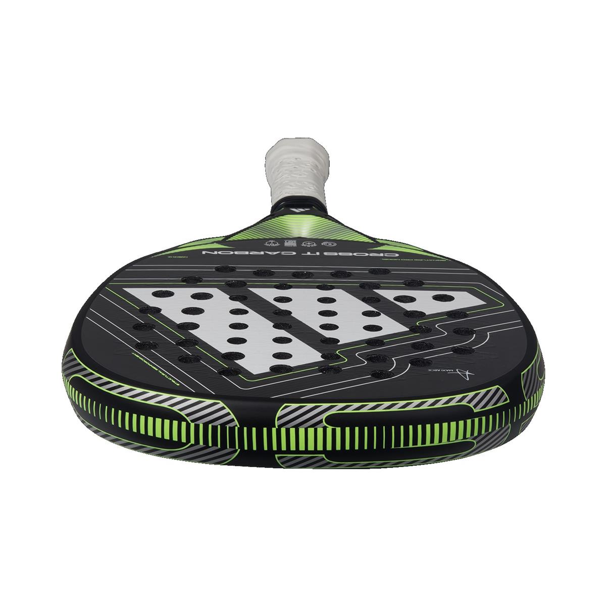 der adidas Cross It Carbon wurde für Spieler entwickelt, die härter schlagen, sich schneller bewegen und bei jedem Schlag volle Kontrolle spüren wollen. Die Dynamic Air Flow Technologie beschleunigt den Schwung, während der Extra Power Grip einen besseren beidhändigen Halt bietet und Ihnen hilft, mehr Power im Angriff zu generieren. Das 11 Dreizehn-Loch-System sorgt für mehr Stabilität und Haltbarkeit bei jedem Schlag und das Spin Blade Decal verbessert den Spin für eine kreativere und kontrolliertere Ballplatzierung.