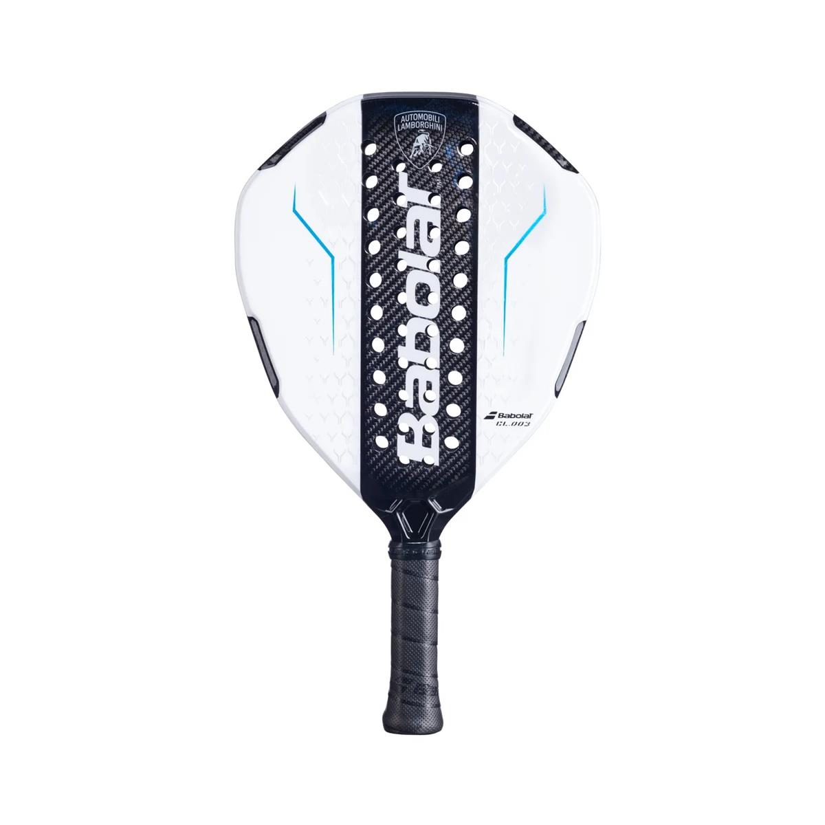 La construction unique, fabriquée en Espagne, est conçue pour des performances maximales. Le BL.003 est développé dans le Studio Padel Babolat et est équipé d'un revêtement de surface thermoplastique (ABS/TPU), qui assure un grand confort de frappe et une très bonne durabilité dans le temps.